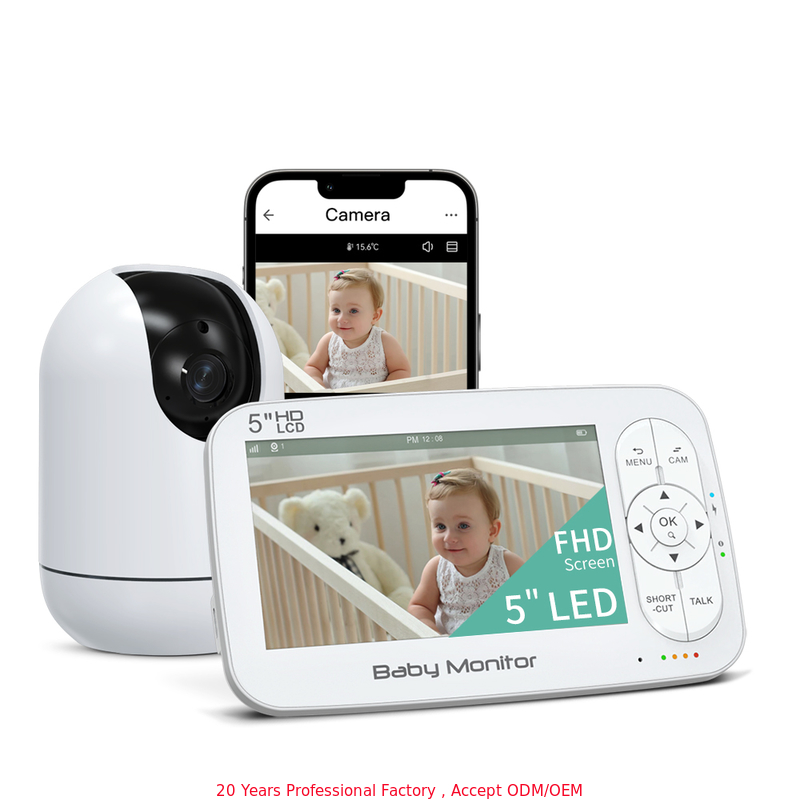 Monitor de Bebê WiFi de 5 polegadas com Bateria de 5000mAh e Pan-Tilt de 360°