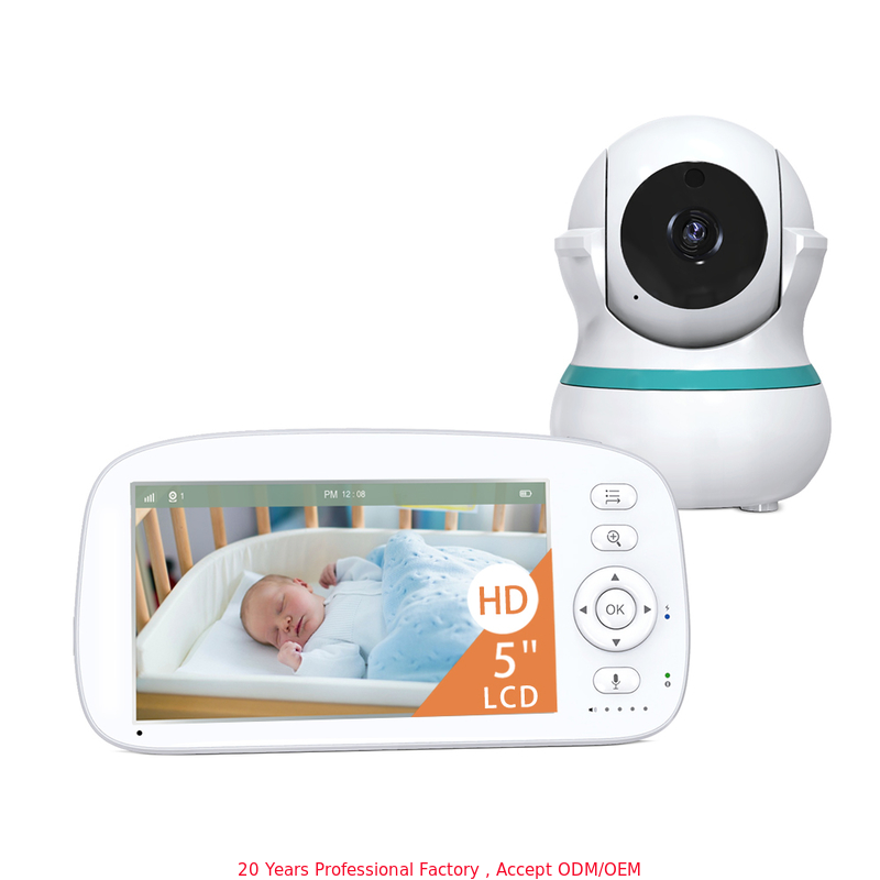 จอภาพเด็กทารก HD ขนาด 5 นิ้ว พร้อมกล้องหมุนได้ 360 องศา และแบตเตอรี่ 5000mAh